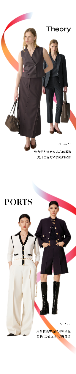 集经典英伦风与时尚于一体Barbour;致力于创造意义非凡的服装,提升生活方式的纽约品牌Theory;用当代美学新绎风格坐标,重构“宝姿之港"优雅风情的PORTS。